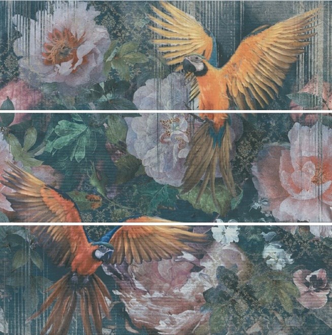 TG/A08/3x/13000TR Панно Раваль Попугаи матовый (из 3 ч. разм. 30x89,5) обрезной 90x90x0,9